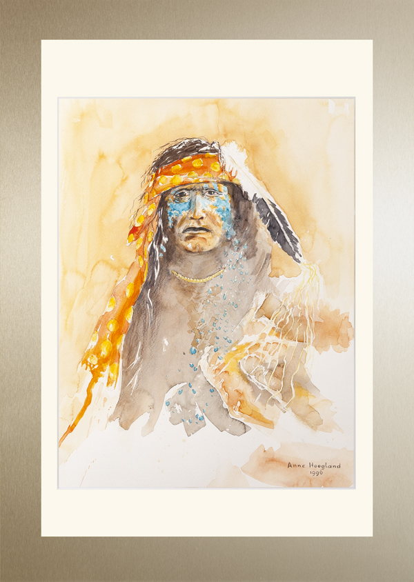Foto des Aquarells des Inders. Dieser Fotodruck wird auf hochwertigem Fotopapier gedruckt. Bei 3 mm montiert. Goldfarbener Alu-Dibond (Al-Kunststoff-Al) für eine perfekte flache Lage und Haltbarkeit.